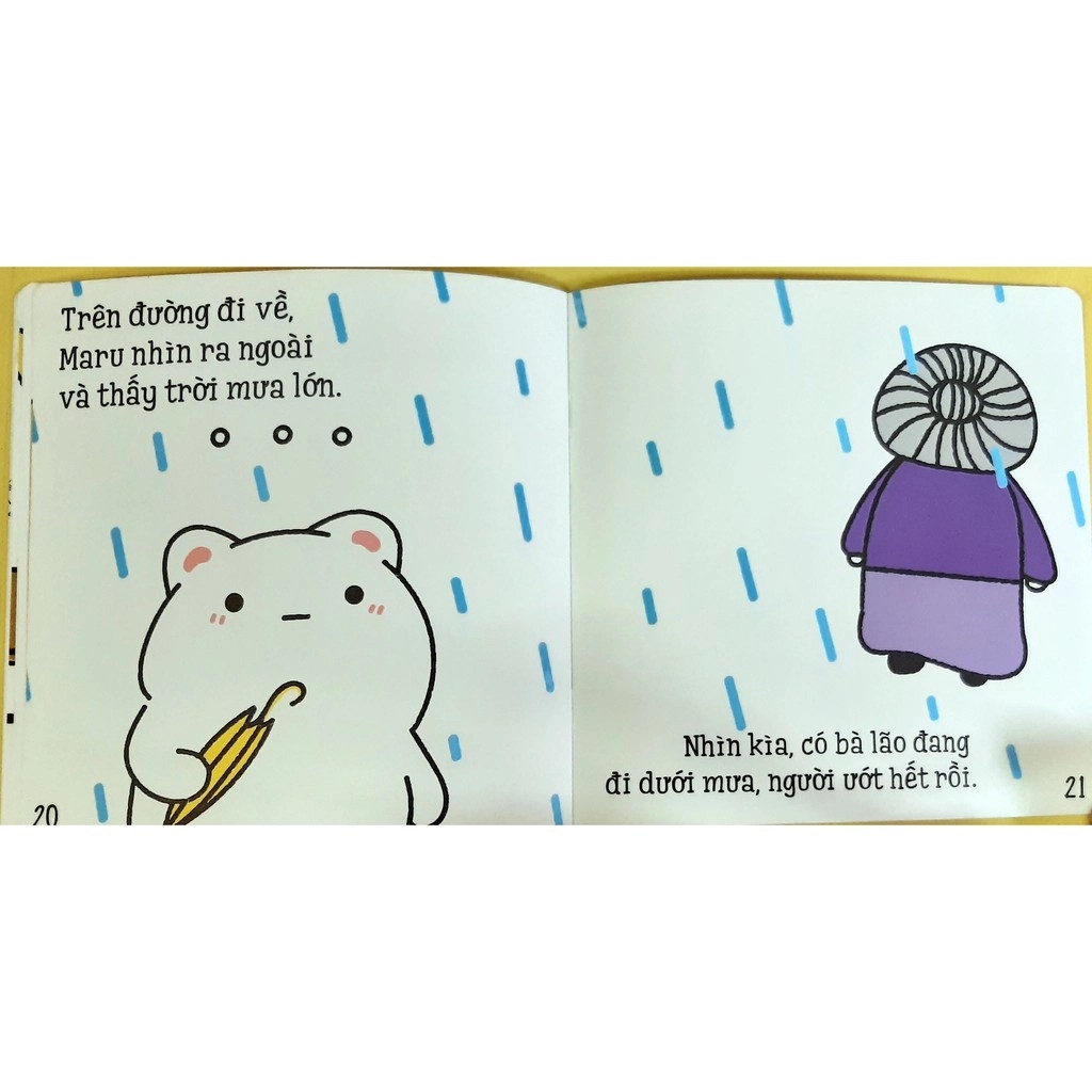 Ehon “Những mẩu chuyện vụn vặt của Maru” không “ép” con hiểu được việc tự lập là tốt như thế nào bằng những lời giáo huấn khô khan, khó hiểu với con trẻ, mà thông qua Maru, con biết được nếu con tự mình làm việc, tự mình khám phá thì sẽ có thật nhiều điều thú vị mà mình còn chưa biết đến.