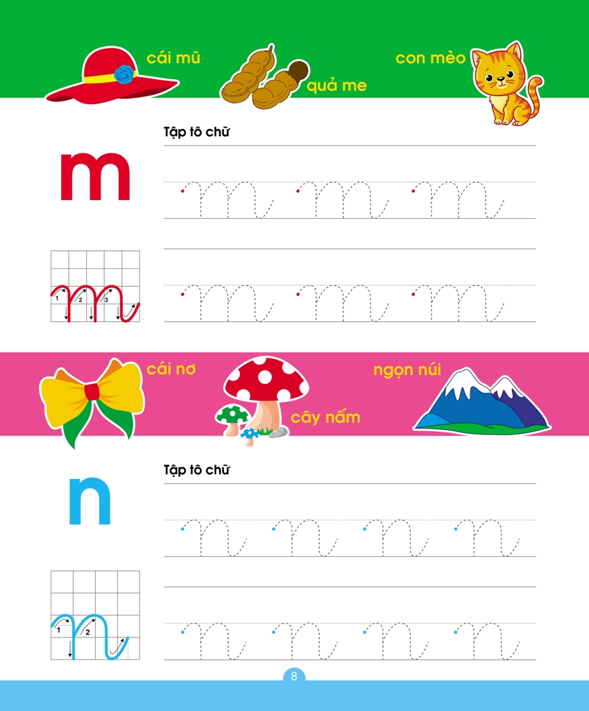 Trọn bộ bồm 5 quyển: Nét cơ bản, Chữ cái, Số đếm, Hình dạng Màu sắc, Trò chơi Mê cung.
