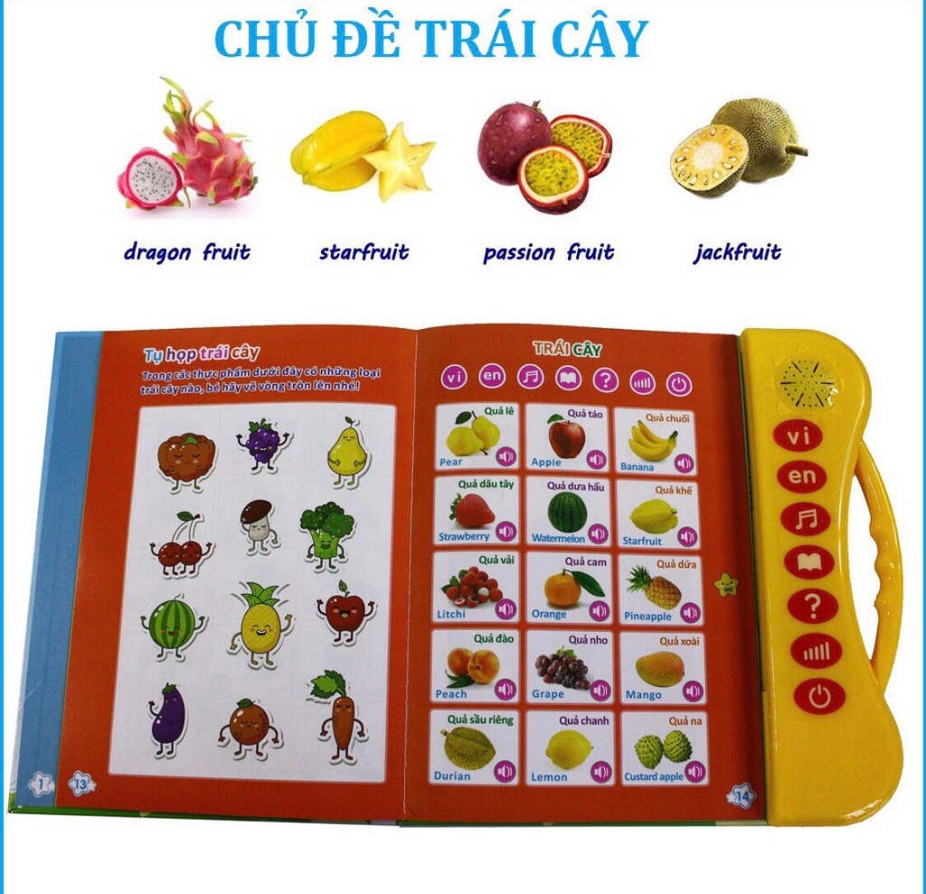 - Mỗi trang của Sách Song Ngữ Anh - Việt Cho Trẻ Em, giúp bé học cách phát âm tiếng việt và tiếng anh. Bé chỉ cần chọn hệ ngôn ngữ và nhấn vào hình ảnh cần học là có thể nghe và phát âm theo sách