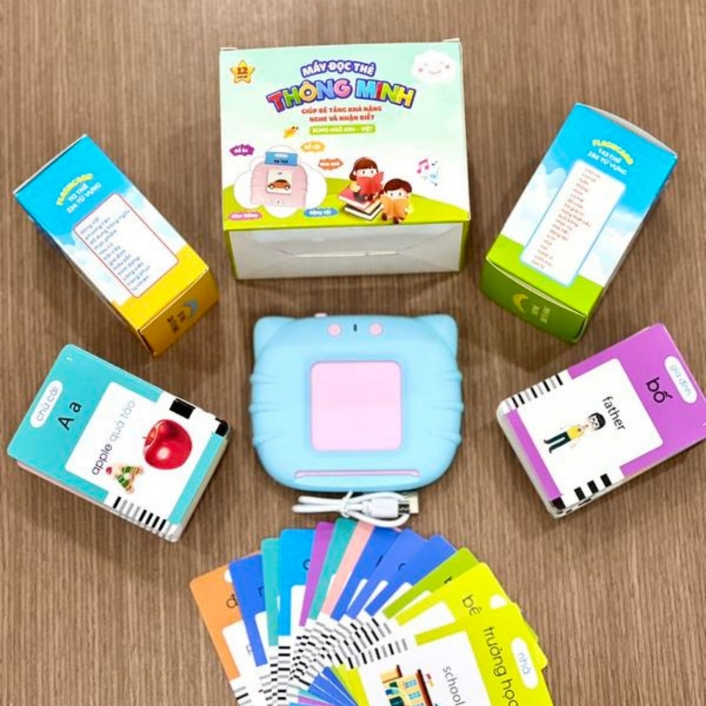 Máy đọc thẻ Flash Card Song Ngữ Anh Việt, đọc được cả 3 chế độ đọc: Song ngữ Anh - Việt, tiếng việt đọc cả 2 tiếng.