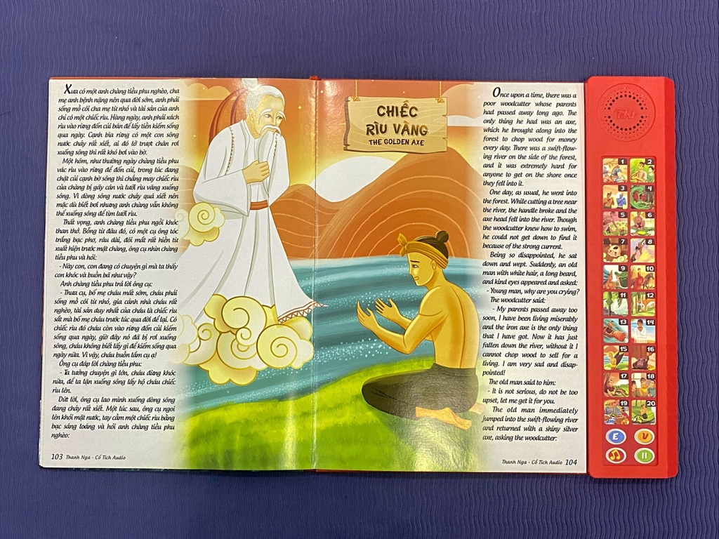 - Truyện audio song ngữ anh việt là sản phẩm mới khác biệt với các cuốn chuyện song ngữ hiện có trên thị trường, đây là cuốn sách âm thanh được chọn lọc từ 20 câu chuyện cổ tích Việt Nam , được đọc bằng cả tiếng anh và việt, giúp bé tiếp xúc và làm quen với tiếng anh một cách chủ động tự nhiên, phù hợp với trẻ em ở mọi lưa tuổi